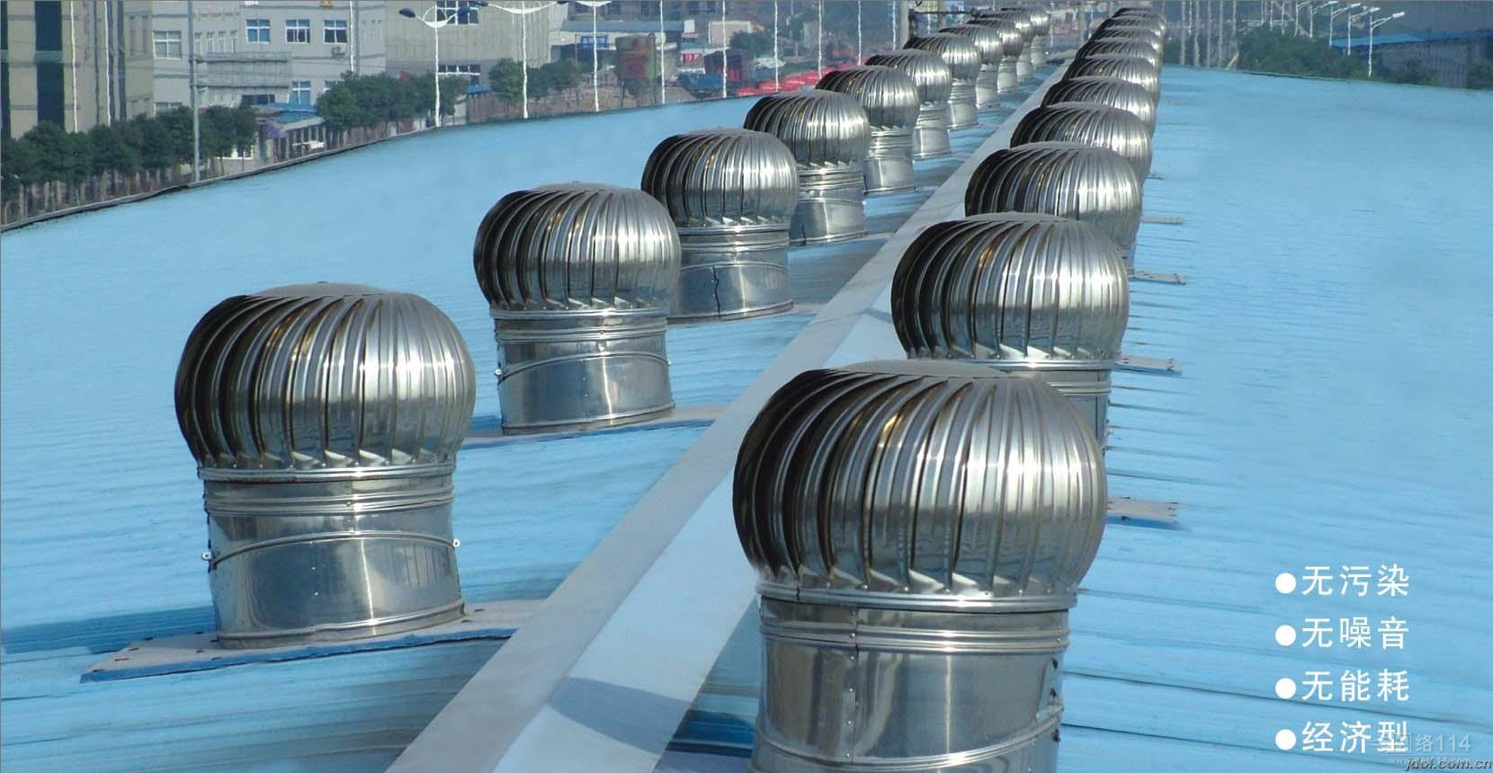 無動力通風機安裝在房頂上,外形自然美觀,每天24小時不間斷旋轉,給以美的動感。
